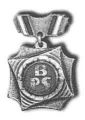 Badge (gold): gold plaque with a 12-pointed star in it. In the central medallion there were the letters B / PS on red background, surrounded by a stylized wreath.