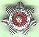 Silver badge 1974-90: as above, but in silver; the ring has the inscription PRZODOWNIK (or PRZODOWNIKOWI - to the leader) in the upper half, and with two laurel sprays in the lower half.