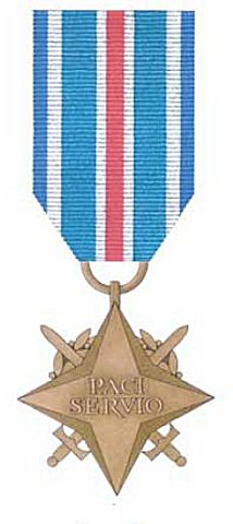 Instituted by act of Parliament of June 14, 2007 and presidential regulation of February 12, 2010. Conferred to naval, air force and civilian participants of the operation "Active Endeavor," in safeguarding the ships on the Mediterranean Sea against terrorists' and hijackers' attacks, under the auspices of the NATO. At least one day of service is required to be eligible. Eligible are also other countries' nationals collaborating with rhe Polish forces during the mission.
