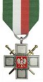 Badge: silver oxidized Greek cross, 40 x 40 mm. Obverse: a red enameled shield with the national eagle crowned eagle, surrounded by a broken chain; between the arms of the cross there are two crossed gilt swords, pointing down. The reverse bears a two-line inscription "ZESLANCOM / SYBIRU" (to the deported to Siberia).
