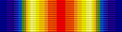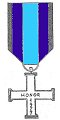 Ribbon: 39 mm, light green with broad a red central stripe, flanked by narrower black ones, white (inner) and red side stripes and blue edges.