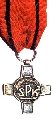 Ribbon: 36 mm, red with a wide light blue central stripe and green edges, similar to that of the Order of the Grunwald Cross.