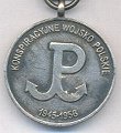 Badge: silver medal, 36 mm in diameter. Obverse: bust of Capt. Warszyc with the insctiption ZOLNIERZOWI WARSZYCA (to the soldier of Warszyc) below. Reverse: the anchor of Polish Resistance, circumscribed KONSPIRACYJNE WOJSKO POLSKIE : 1945-1956.