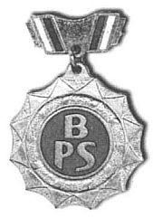 Badge (gold): gold plaque with a 12-pointed star in it. In the central medallion there were the letters B / PS on red background, surrounded by a stylized wreath.