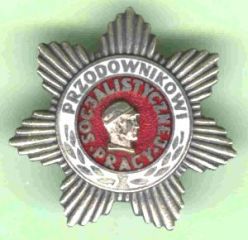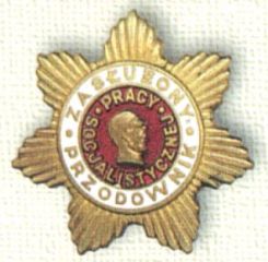 Instituted by decision of Government of June 30, 1945 as the Meritorious Leader of Labor Decoration (Odznaka "Zasluzony Przodownik Pracy") and Leader of Labor Decoration (Odznaka "Przodownik Pracy"). Amended and renamed in 1974. Conferred as a in gold and silver respectively to leaders of labor, winners in the so-called socialist labor competitions. The silver decoration was conferred by the director of the factory of the leader, while the right to confer the gold one rested solely in the hands of the approprite minister, only to those individuals who had been previously awarded with the silver decoration.