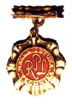"Meritorious Worker of National Council" badge 1969-74: oval medallion 26 x 26 mm, made of gilt metal. The obverse depicted the contour of Poland with two horizontal stripes of enamel: white (upper) and red (lower), with the letters PRL (Polska Rzeczpospolita Ludowa - People's Republic of Poland) in the center. The background was green enameled. Around ran the decoration's name: ZASLUZONY PRACOWNIK RADY NARODOWEJ and two stylized laurel sprays below. The reverse side was not enameled, and had the year of institution 1969 in the center. The medallion suspended from a pentagonal device of gilt metal, with stylized laurel leaves. On the reverse side there was a safety pin for mounting. The badge was worn on the right breast.
