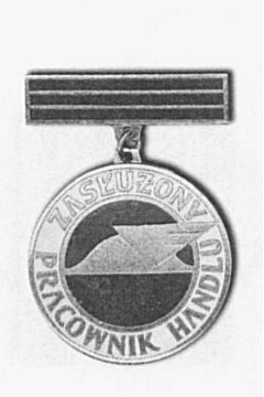 Instituted by the Government on November 25, 1966, as the Meritorious Worker of Commerce Decoration (Odznaka "Zasluzony Pracownik Handlu"). Amended and renamed on May 4, 1973. Conferred to workers of state commerce and commercial services for at least ten year exemplary work.