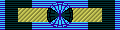 Ribbon: 45 mm wide in the 1st and 40 mm in the 2nd class, blue with gold-red-gold side stripes. If ribbon bars alone are worn, that of the first class has a rosette and gold lace in the center.