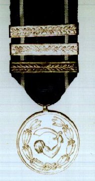 Ribbon: 37 mm light blue with white side stripes. Each subsequent award is denoted by a silver bar with oak leaves attached to the ribbon.