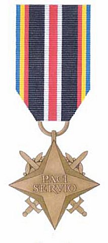 Instituted by act of Parliament of June 14, 2007 and presidential regulation of February 12, 2010. Conferred to naval, air force and civilian participants of the operation "Active Endeavor," in safeguarding the ships on the Mediterranean Sea against terrorists' and hijackers' attacks, under the auspices of the NATO. At least one day of service is required to be eligible. Eligible are also other countries' nationals collaborating with rhe Polish forces during the mission.