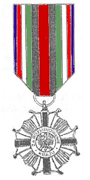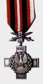 Instituted by "Counter-president" in Exile in London, Juliusz Nowina-Sokolnicki in 1985, on the 40th anniversary of victory over nazi Germany. Meant as a continuation of the Independence Cross and Medal to be conferred to individuals who fought for the cause of freedom and indepencence of Poland, either during WWII in the Armed Forces in the West or in the occupied country in the Resistance, or after the war opposing Soviet and communist domination in an underground organization or in democratic opposition. Those who fought with the arms in hands are eligible to the cross with swords. In 1989 the right to confer the award was ceded to the Association of Underground Armed Forces 1944-56 in Lodz.
