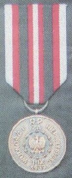 Instituted on May 7, 1997 to reward the individuals or organizations who have helped satisfy the demands of the victims of the Third Reich in Poland. The medal has two classes: gold (for at least 8 years of honorable service in the organization) and silver (for 4 years of service). Both classes are worn on a ribbon around the neck.