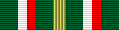 Ribbon: 39 mm, light green with broad a red central stripe, flanked by narrower black ones, white (inner) and red side stripes and blue edges.