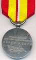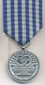 Ribbon: 1st type - green with white and red edges; 2nd type - "double rainbow" with a red stripe in the center (identical with the Interallied Victory Medal of WWI). Due to some technical difficulties with manufacturing such a ribbon, the actual one is made up of five stripes: blue, yellow, red, yellow and blue.