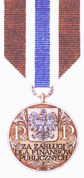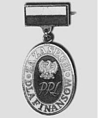 Instituted by the Governemt on January 10, 1975. Conferred in two classes (gold and silver) to workers of the Ministy of Finances, and to members of financial departments of state owned enterprises and financial control bodies for long and efficient work. In could also be conferred to organizational units. It was discontinued ca. 1990 and tenewed in one class and altered form by Government regulation of October 14, 2003.