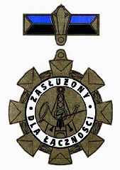 Badge 1996: as above, made in gilt metal, with the insciptions altered to ZASLUZONY : DLA LACZNOSCI on the obverse and MINISTER / LACZNOSCI (minister of communications), and RZECZPOSPOLITA POLSKA on the reverse.