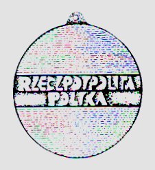 Suspension: golden or silver metal bar 25 x 7 mm, with the letters PCBC (Polskie Centrum Badan i Certyfikacji) on it, and a mounting screw on reverse.