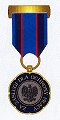 Ribbon: 27 mm, dark blue, with broad black side stripes flanked frromm the inner side by red pin stripes.